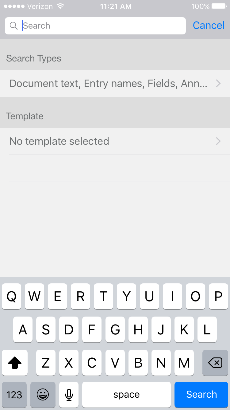 Junaid, clicking on the Search types header does not bring up an option for saved searches. In the reference material, it states that there is a search button which I do not have. What you see in the first image is what I get when I pull down the search box from the App header. No other options.