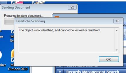 I have a user who is currently experiencing an issue when trying to complete a scan into their LF repository. I have attached two screen shots of what windows populate when they try and do so. So far this user is the only user experiencing this issue. The user is in the correct security group. I have already had them follow the below steps to attemp to resolve the issue: