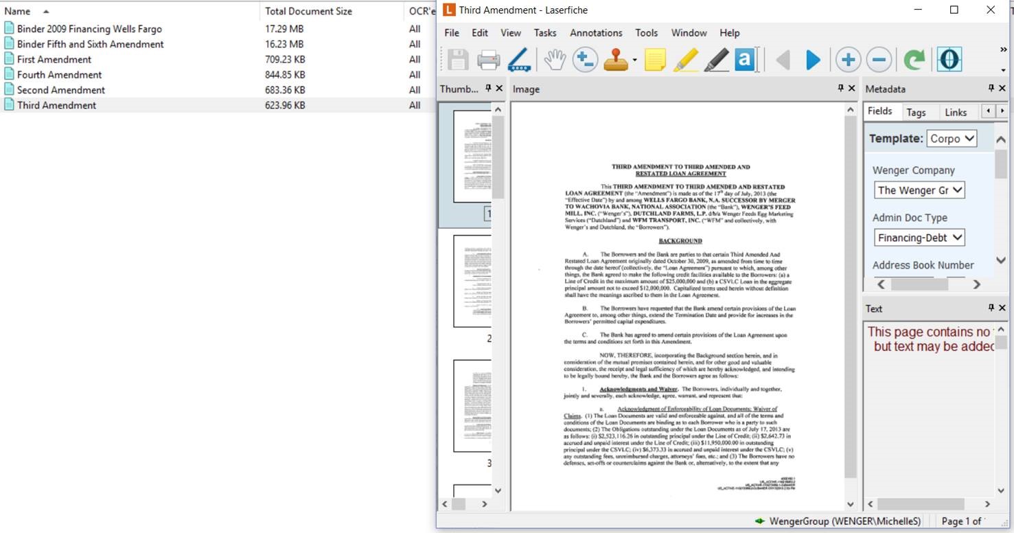 Why would Laserfiche show that all the pages were OCR’d but then show no text available for the document? Of those in the list at left the first and third show as OCR’d but there are no text pages.