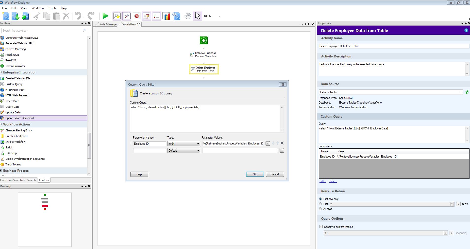 source link : https://www.laserfiche.com/support/webhelp/workflow/9.2/en-us/LFWorkflow.htm#cshid=Resources/Activities/Custom%20Query.htm