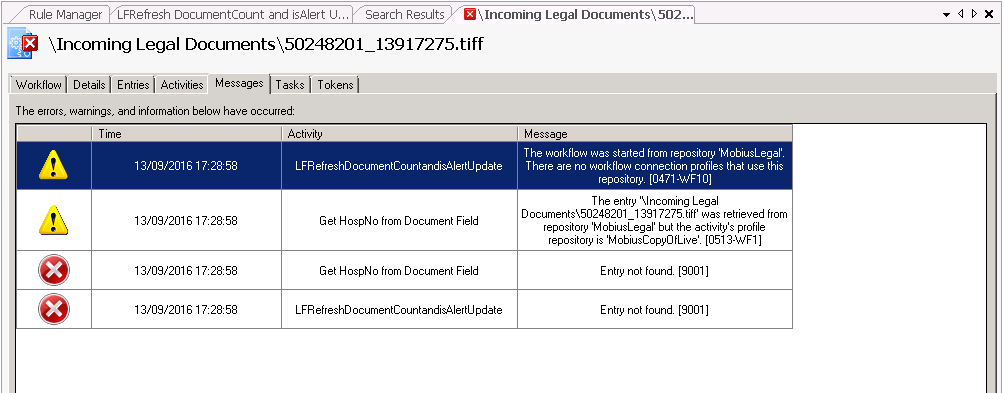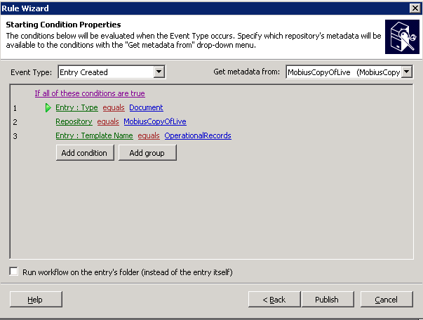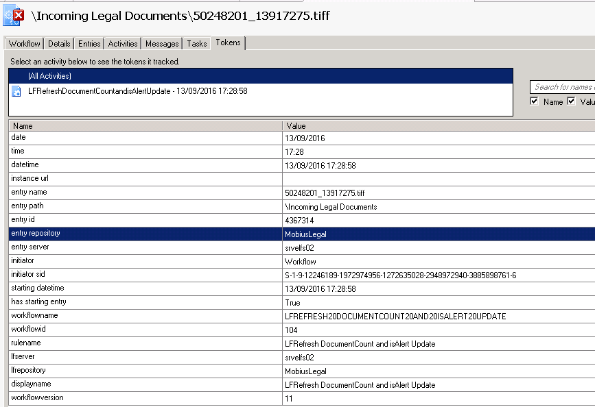 I have setup the starting rules as 'trigger this WF when a new document gets created in the repository'. After publishing the workflow, WF is keep looking into the wrong repository. I have checked each and every setting, created a copy of workflow and re-created starting rules, re-published, checked the session in notepad and searched for the word 'Legal'  and can't find this word (because it's triggering in a different repository called 'MobiusLegal' which is even at a different LF Server.)