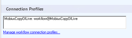 I have a workflow where I have configured the ConnectionProfile for a repository called 'MobiusCopyOfLive'.
