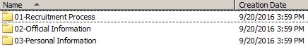2) Inside each above mentioned Sub folders there are 3 Sub folders(Recruitment Process, Official information , Personal Information).