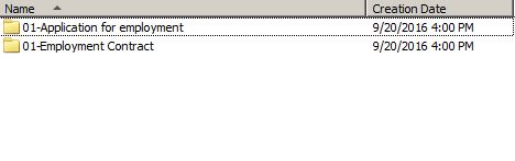 Inside "01-Application for Employment" folder the actual document with template will be there, whose template and 2 field values I need to copy to "1111-Employee name 1".