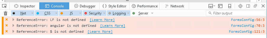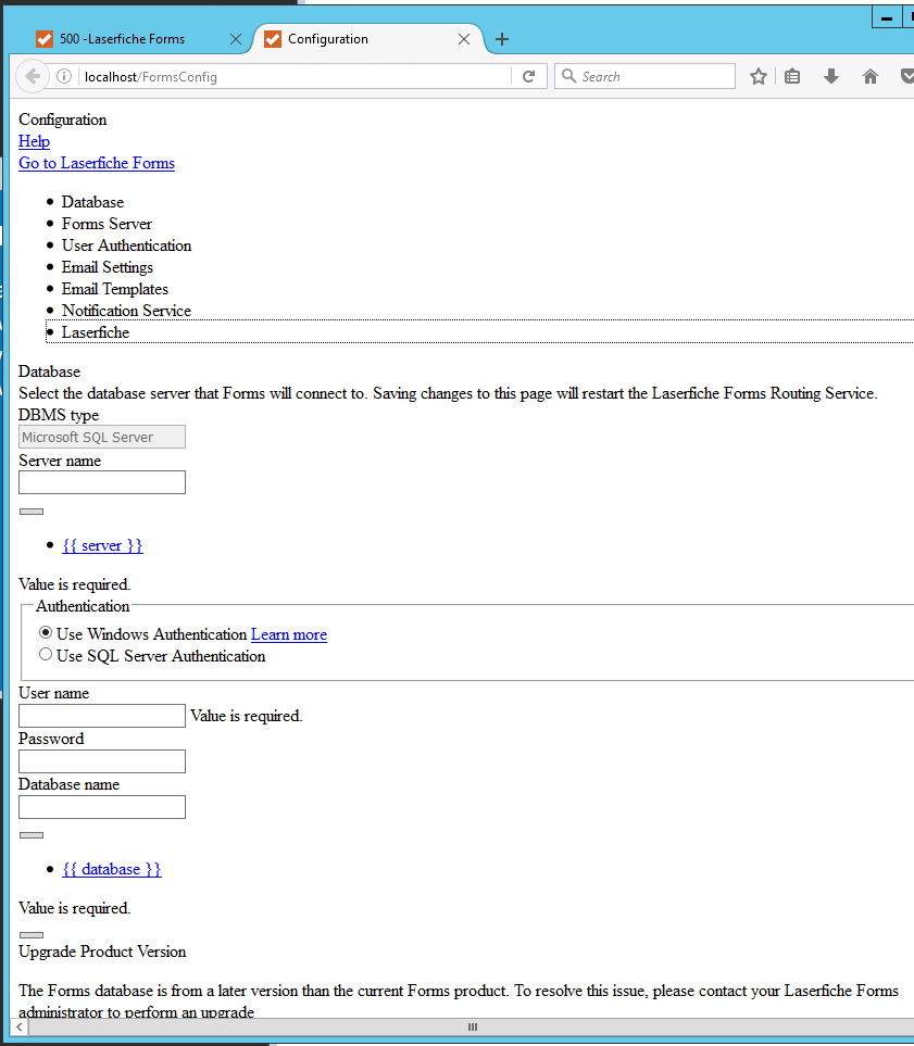 The normal forms page loads fine but is not configured.