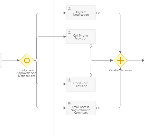 I'm struggling to get a conditional set of user tasks working based on an inclusive gateway to determine the paths to go down containing user tasks and followed by a parallel gateway to merge paths afterwards.