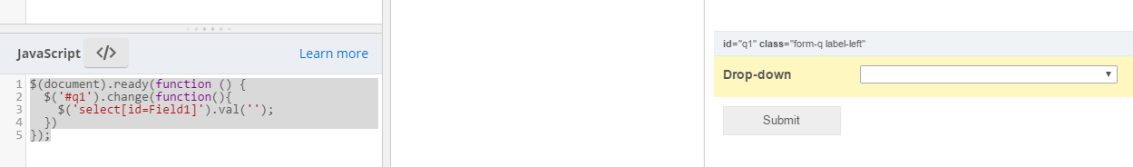 $('#q1').change(function(){