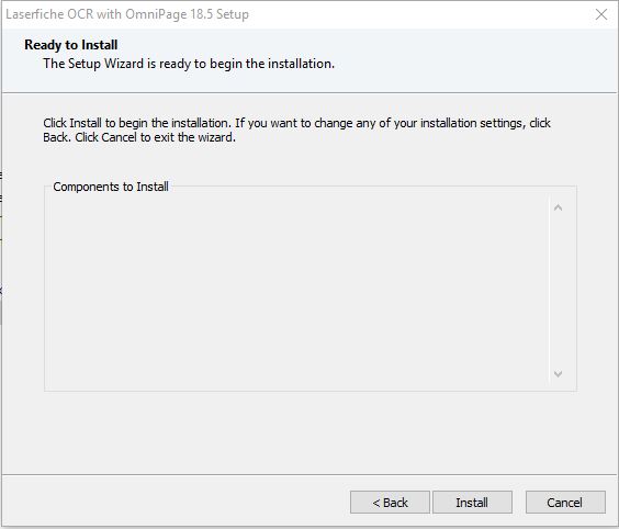 The initial error stated: OCR Failed - during the 9.2 client install. When I attempted to run the LF OCR OmniPage 18.5 setup, the Components to Install section is blank (see attachment).