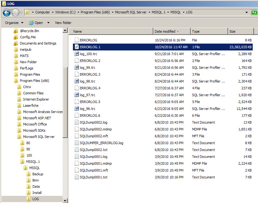 So a client of ours has noticed that a SQL ERRORLOG has a file size of 25,582,035 KB. All the other logs are just over 200 KB or less. I can't seem to find a good answer to why this is?