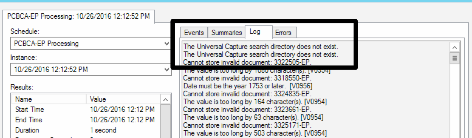 All jobs logs are throwing the error in Quick Fields Agent: The Universal Capture search directory does not exist.