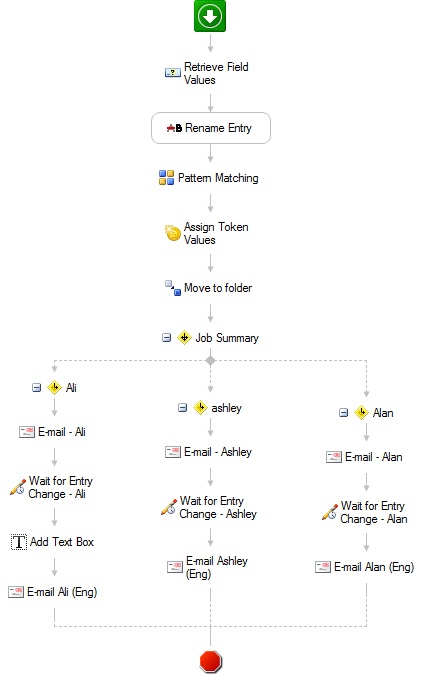 I am trying to add a text box to a document based on data entered before it (wait for entry change). I have 2 fields, (1) asks if the job has been assigned to an Eng. & (1) that is a pull down to select the eng. email. Once the supervisor chooses "yes" & the email address, it sends a link to the document to the eng. I would like it to also add a text box saying "Assigned Eng. - "selection made in field value (eng. email)" ". But all I get is the yellow text box with Assigned Eng but it does not add the value that was choosen by the supervisor (Eng. email).