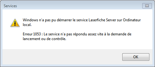 I'm installing Laserfiche Rio 10.1. For now, I've installed Directory Server and Laserfiche Server but at the end of the install, the wizard try to start Laserfiche Server Service in vain.