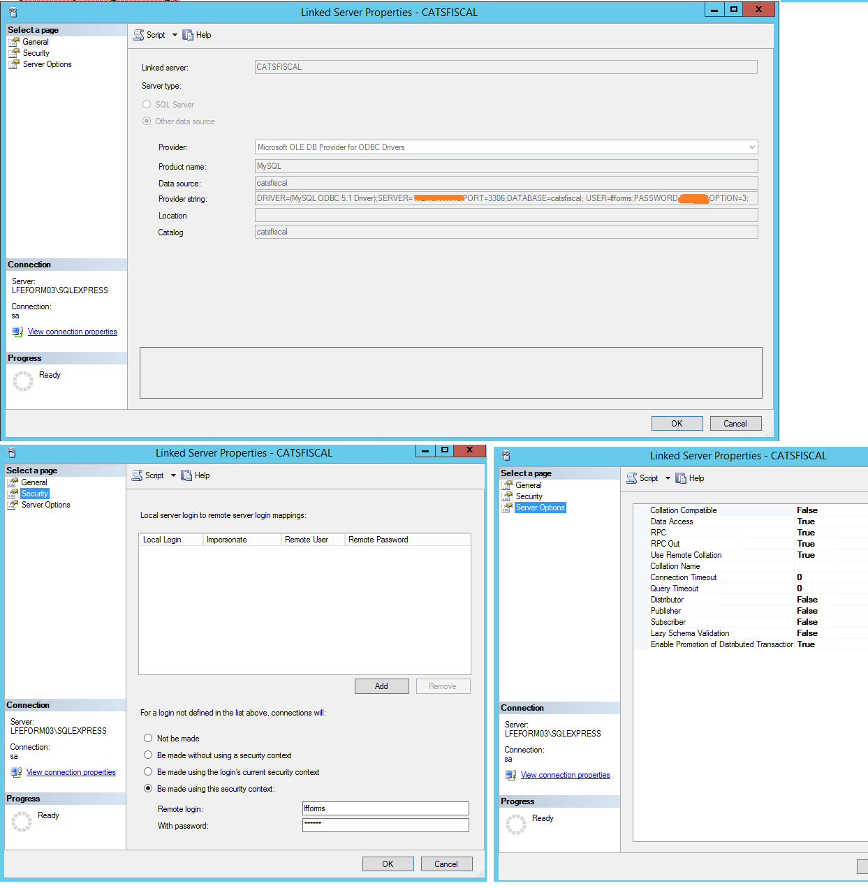 4. Set the new Linked Server properties (attached).