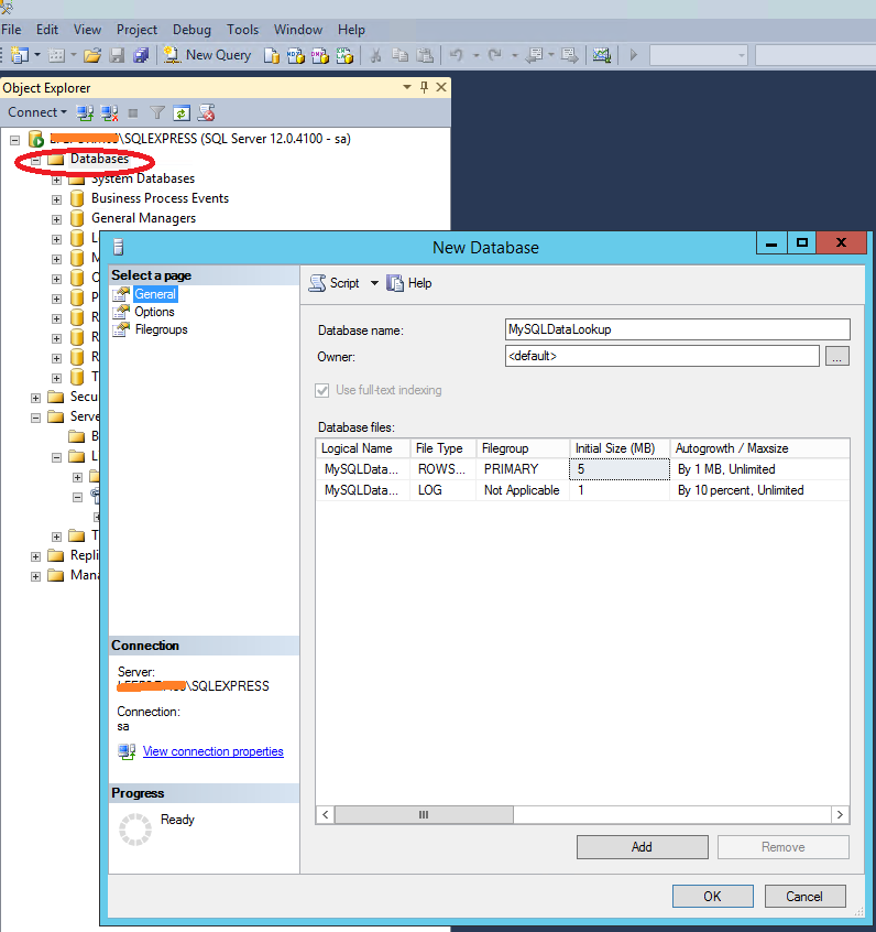 6. Create a New Database in SQL: Right Click on Databases folder | New Database