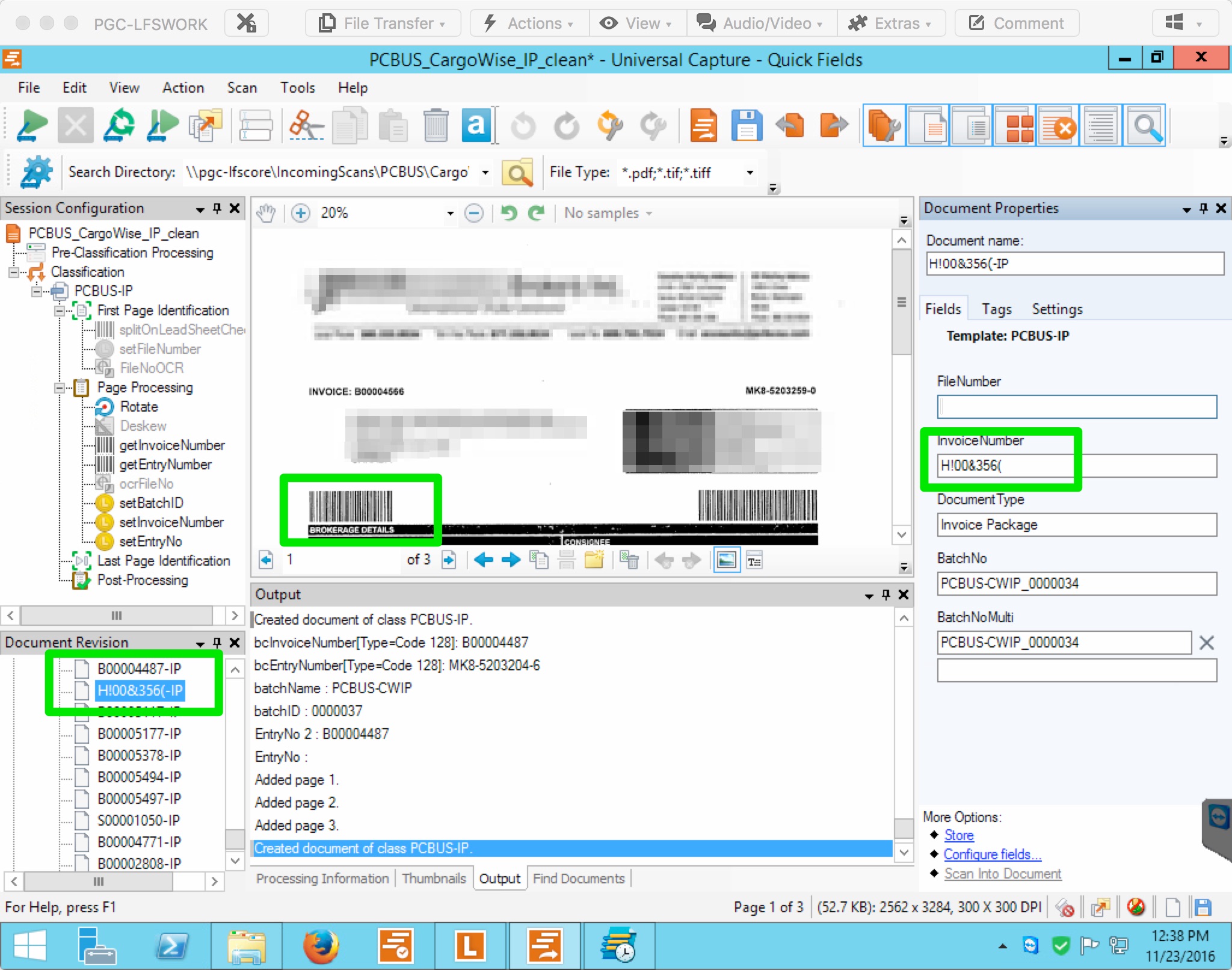 See the attached screen shot, we are bring a new invoicing system online and all invoices are being scanned into LF via QF (v10).