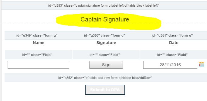 I centred my fields in my table (see attached) but now I just want to target my table header only. "Captain Signature" how do I target this only and align it left?