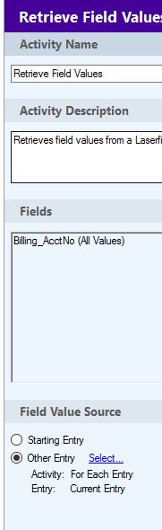 My goal is to copy a document from one folder in Laserfiche to another, switch the volume & template, and copy two or three fields of metadata, one of which is a multi-valued token called "Billing_AcctNo".