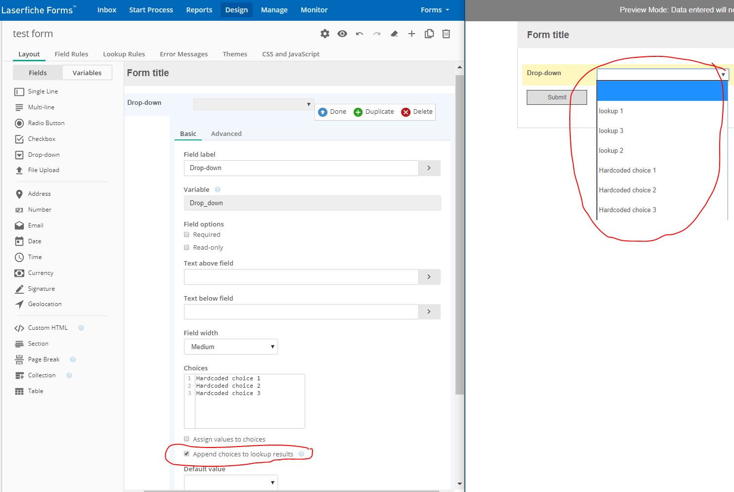 I have a form where I am using a db look-up to retrieve a list item for a drop down menu. However, when I do this, I lose all the other options that I have loaded into Forms for that drop down.