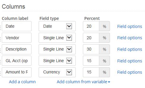 The table width is set at 100%, and then each column is set to a fixed amount. (See screenshot).