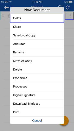 To clarify when i choose one of these drop downs, the menu comes up but it's not populated with selections as it is on the desktop client in the same documents/ fields.