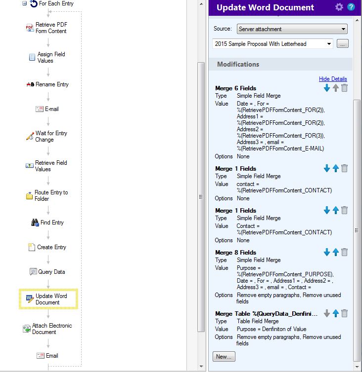 Sorry, I meant the table merge action from the Update Word Document activity in Workflow.