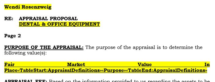 The stuff in yellow pulled in the correct info except the TableStart:AppraisalDefinitions Purpose TableEnd: