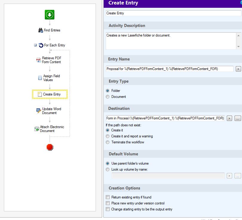 The workflow does everything down to Create Entry