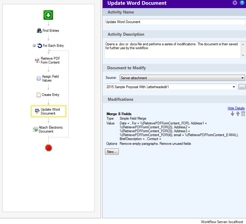 update word document is not working, I did have this working, but I made some changes (not to the word document) and now I can't get it working again. I am starting over with a test workflow and still can't get it to work. Can someone please take a look as to what I am missing here. I did re-read "Updating a Microsoft Word Document with Laserfiche Workflow" white paper and believe I am following all instructions. Any help would be appreciated! Thanks Wendi