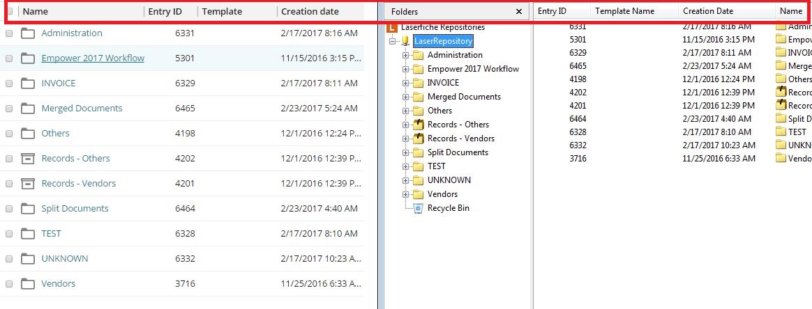 folder view column order not matching in Web Client