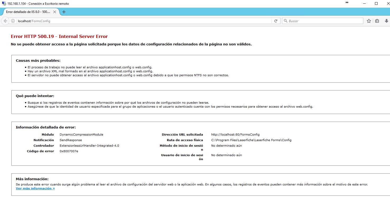 Hi. I´m trying config the forms server and I´m getting the following error.: