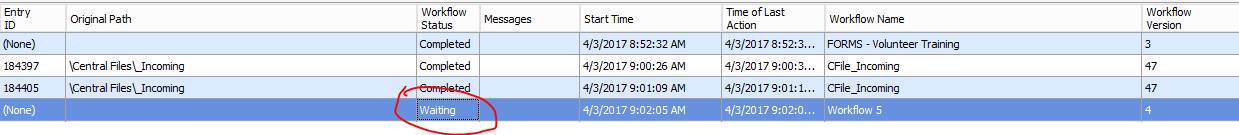 I have a workflow instance that went into a Waiting status and it will not complete even when attempting to force completion with a Complete or Terminate command. The workflow is hung on an email task.