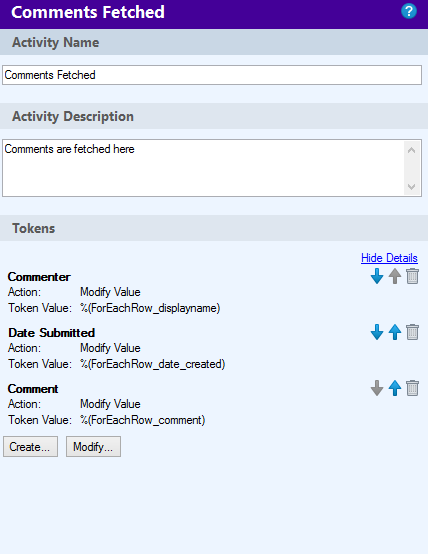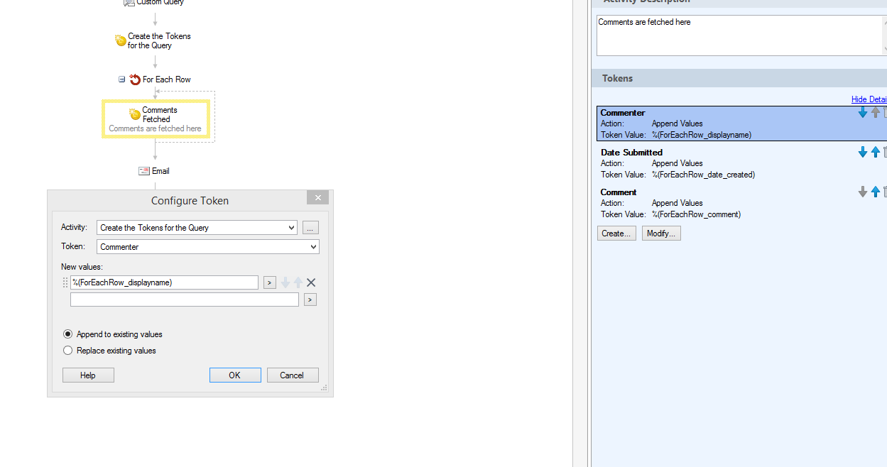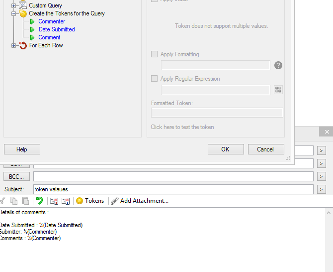 Thanks, now will have to figure out how to make sure how to map each of the three different tokens to each other. Example if 3 results from sql with 3 column values need to be arranged so row 1 of the token corresponds to the first row of sql query with each column listed under each other.
