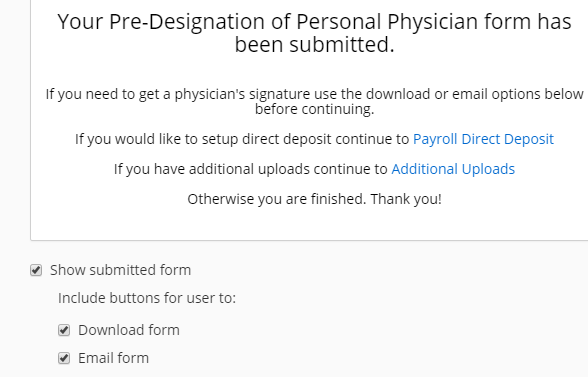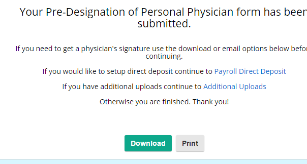 But the thank you page just shows the Download and Print buttons