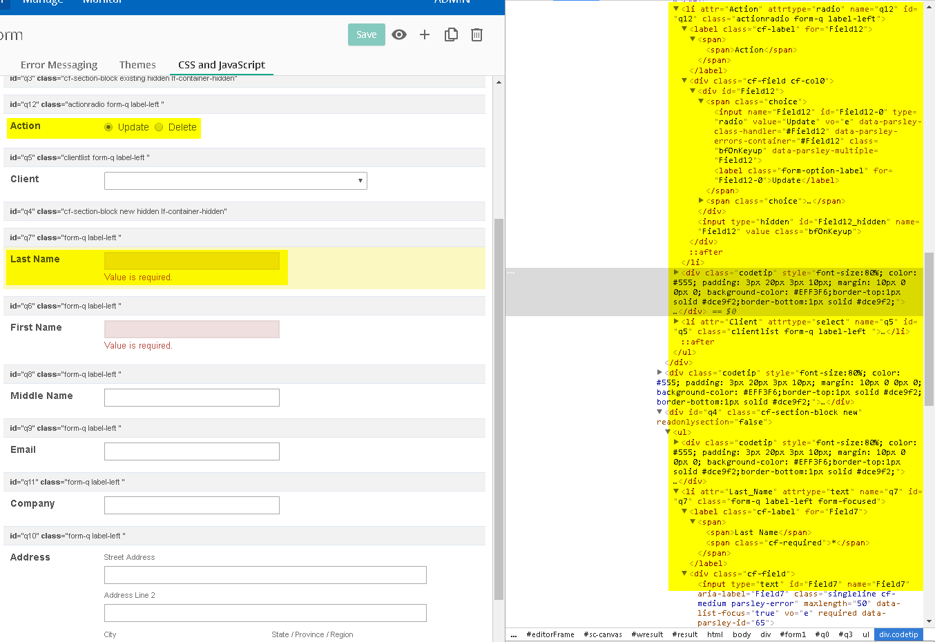 Would any of the "parsley-..." classes be impacting things? Also, I noticed that the Last Name input tag in the DOM contains the word "required" hanging out by itself, not as part of a "class=" or "name=" etc. What type of attribute/value is the word "required" in this context?