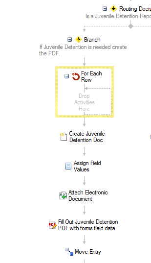 I'm using LaserFiche forms to collect up to 6 crimes (charges) per person. There are 2 fields per line. I want workflow to use these fields in a "fillable pdf" activity. Using "Retrieve Business Process Variables" it only gives me the first row of data with the two fields listed.