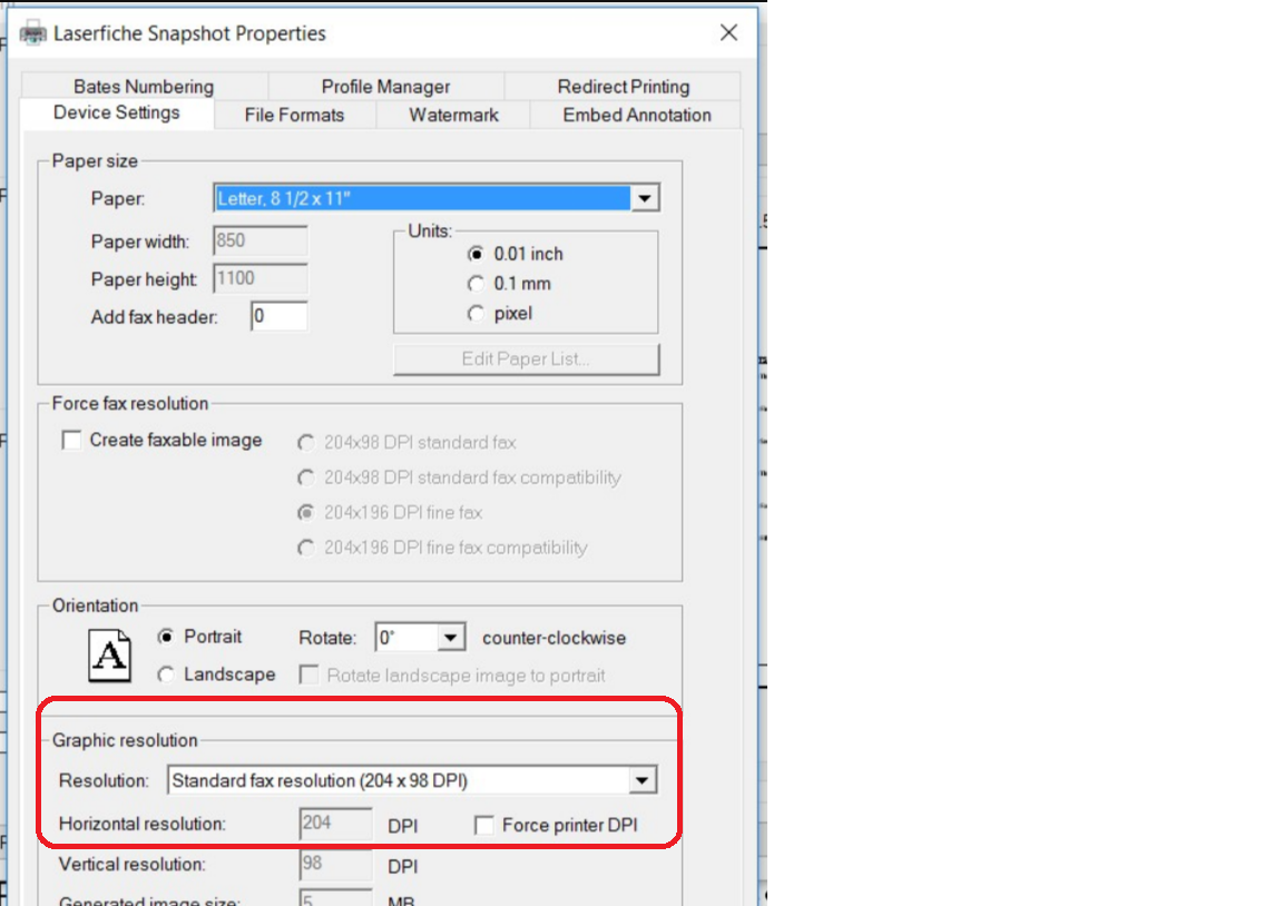 I have a customer that is setting up the graphic resolution of the printing preference in Snapshot configuration to (Medium reso 300*300 dpi) but when they are in a document and they want to use Snapshot the default resolution changes to (Standard Fax).