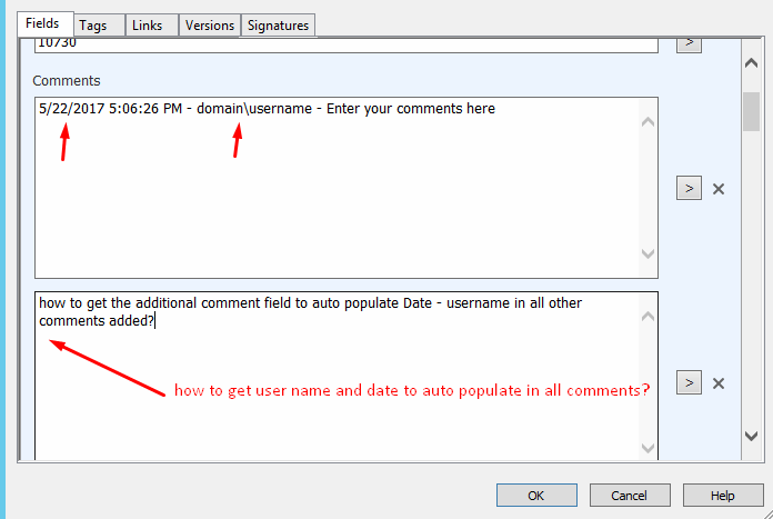 Has anyone found a way to add notes/comments to a template that auto populates the Date/Time and UserName.?  The field has to be a “multi-value” so they can continue adding comments but every time they add a comment it needs to automatically enter the Date/Time and UserName at the beginning of the note.