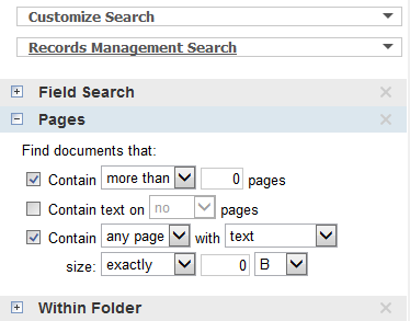 I am cleaning up a repository that has documents with a lot of blank pages. Is there a search that I can use that will show all blank pages within a repository?