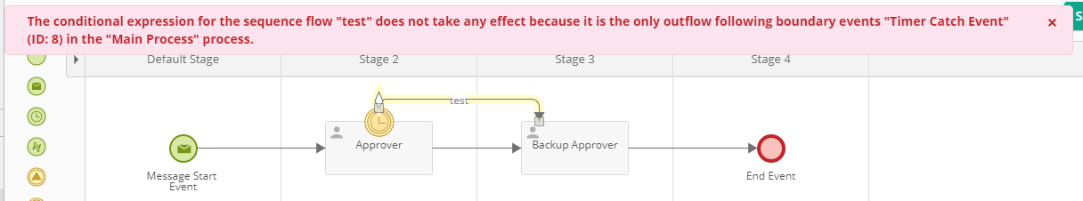 The timer catch event named "Timer Catch Event" in the "Main Process" cannot have multiple outflow paths."