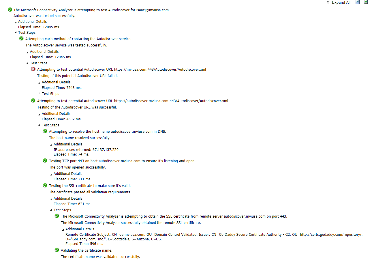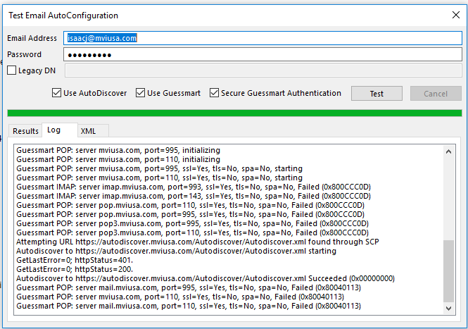 Attempting to test potential Autodiscover URL https://mviusa.com:443/Autodiscover/Autodiscover.xml