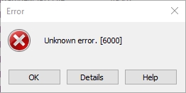 Error Message: Unknown error. [6000]