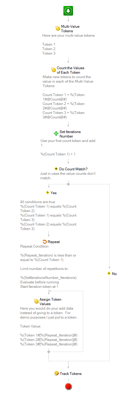 I am using workflow for each value to get the token iteration. But the Query is not able to cycle through the values in all the multivalue tokens.