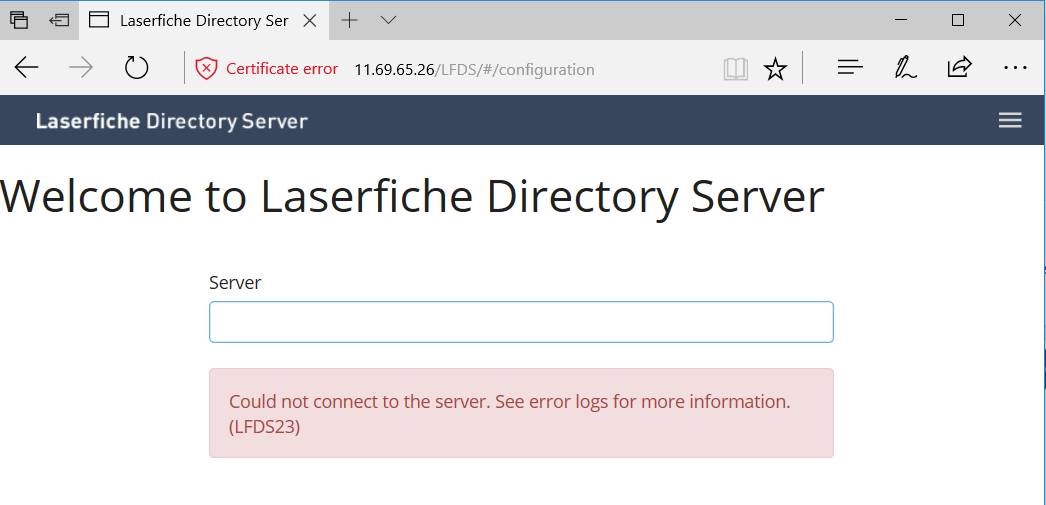 When I try to log in to Directory server I get this error as per screen shot.