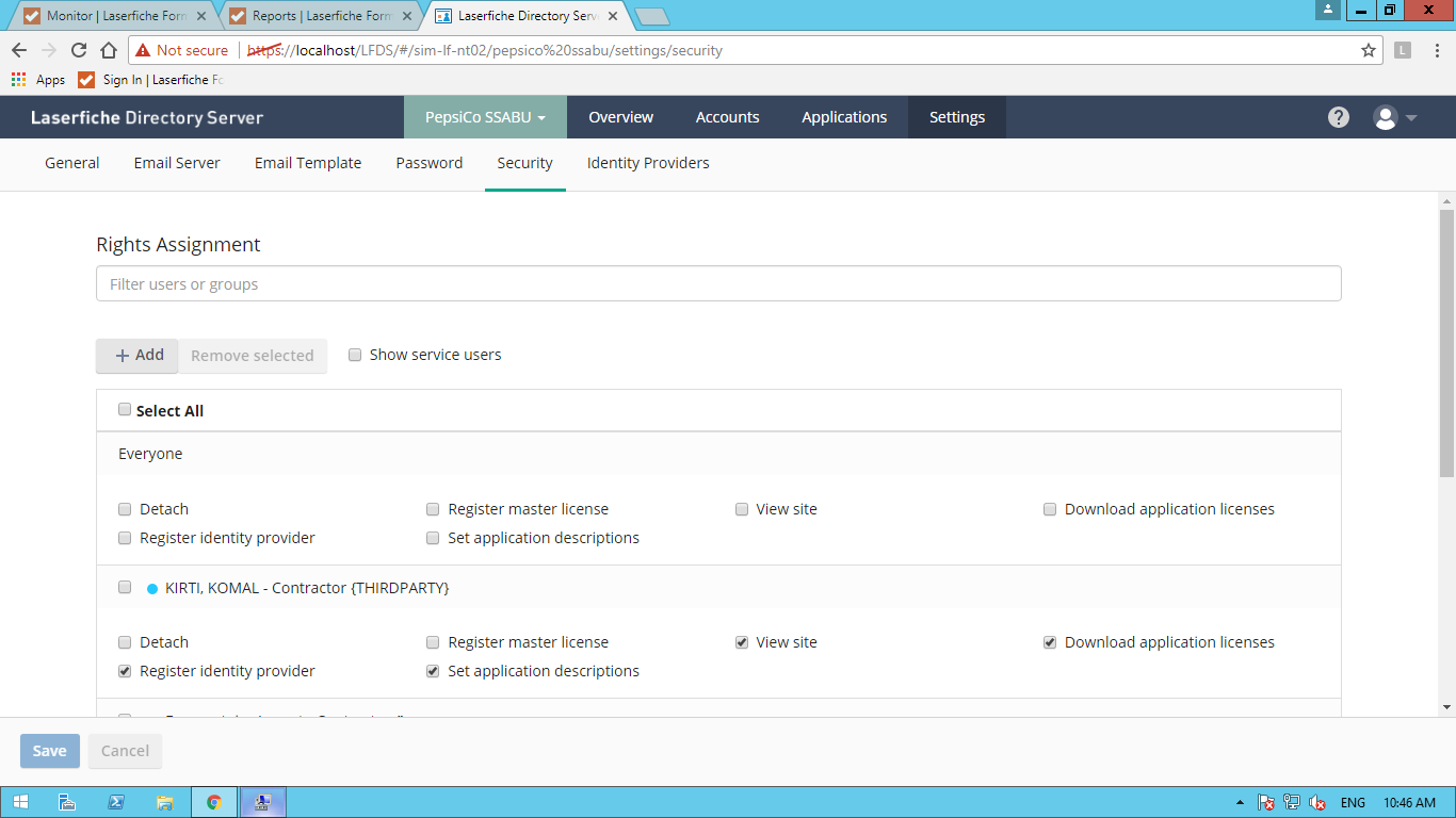 The user was added to the Security Groups in Directory Server. Event Viewer gives me the following error