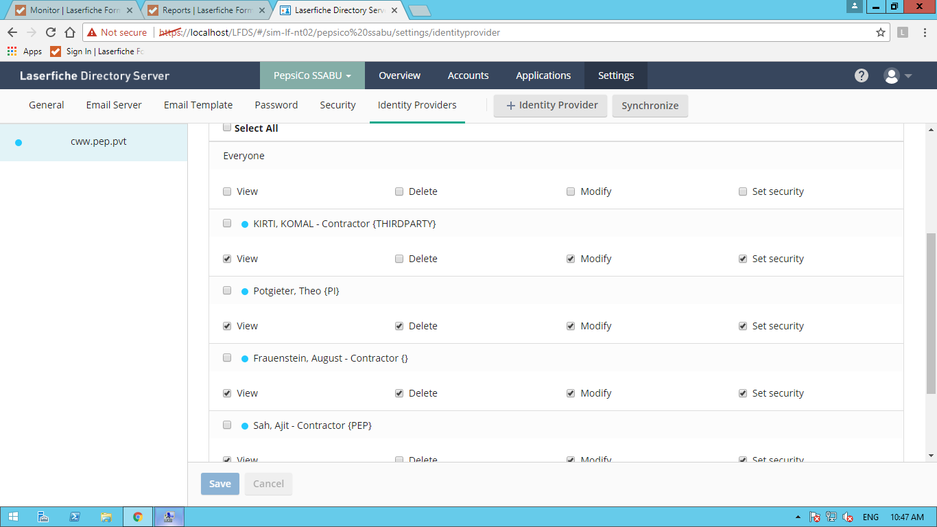 Laserfiche.LicenseManager.TrusteeNotFoundException: Exception of type 'Laserfiche.LicenseManager.TrusteeNotFoundException' was thrown. at Laserfiche.LicenseManager.LicenseManagerService.GetUnsignedToken(LicenseDatabase database, String sidString, String identityProviderName, String hostIDs, Boolean bLocalPrincipal) at Laserfiche.LicenseManager.LicenseManagerService.GetUnsignedTokenEx(LicenseManagerServiceCallArgs _args) at Laserfiche.LicenseManager.LicenseManagerService.DispatchFunction(LicenseManagerServiceCall func, LicenseManagerServiceCallArgs args) Type: Laserfiche.LicenseManager.TrusteeNotFoundException Stack Trace: at Laserfiche.LicenseManager.LicenseManagerService.GetUnsignedToken(LicenseDatabase database, String sidString, String identityProviderName, String hostIDs, Boolean bLocalPrincipal) at Laserfiche.LicenseManager.LicenseManagerService.GetUnsignedTokenEx(LicenseManagerServiceCallArgs _args) at Laserfiche.LicenseManager.LicenseManagerService.DispatchFunction(LicenseManagerServiceCall func, LicenseManagerServiceCallArgs args)