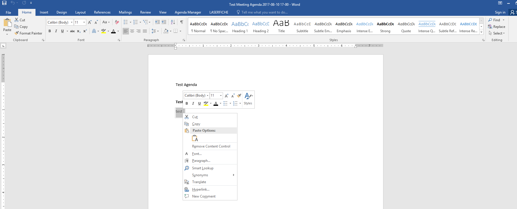 Using Agenda manager 9.0.2.241 with MS Word 2016
