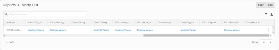 The title is a mess - sorry about that. I have a customer who is looking to set up a custom report. Currently, the users of the Form processes enter an address, and then fill out a table with data points pertaining to the address entered. As such, the customer is wanting to set up a report such that he can select the address and reproduce the accompanying table, presumably without using SQL lookups. Currently he is only able to produce the image attached, which isn't what he wants, obviously.