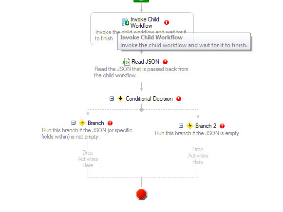 I am not expecting an error to occur by Laserfiche.  In my child workflow I am calling a web service to retrieve customer information, passing the customer number as a parameter.  If the customer number is invalid then the JSON comes back with no customer information.  When this occurs I want to be able to throw my own error in the child workflow so the Catch activity in my parent workflow will execute.