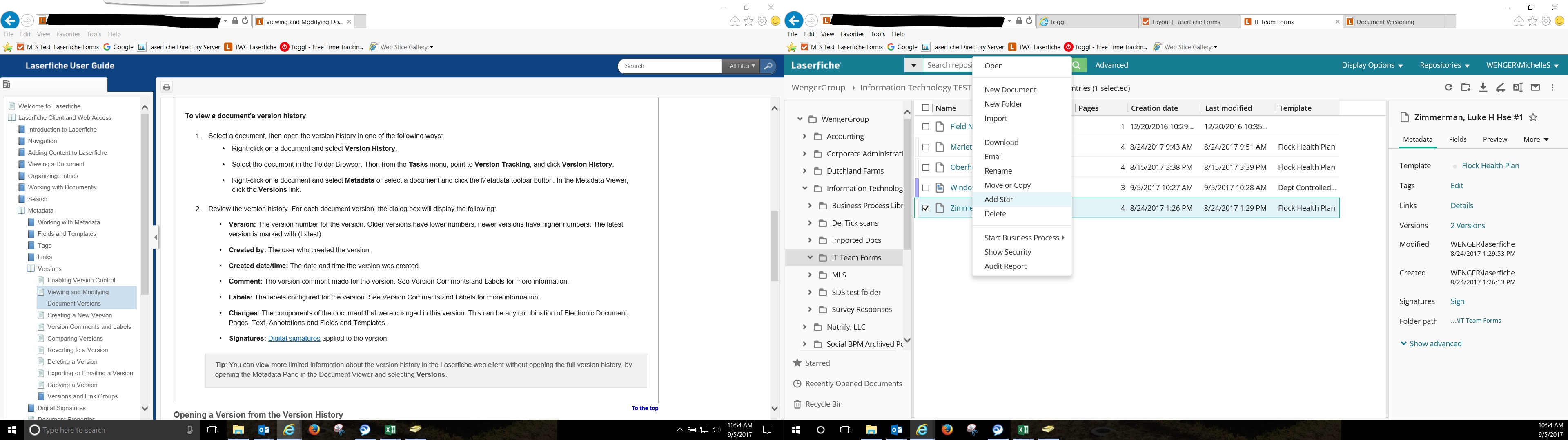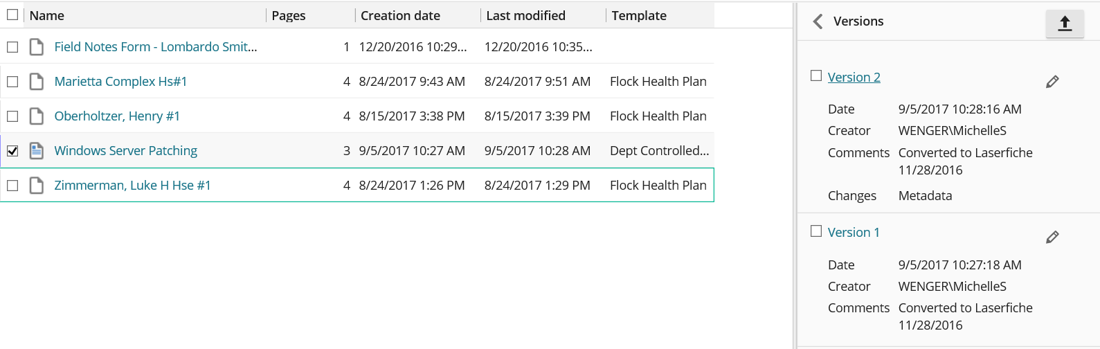 Be able to see the changes to the template of a version of the electronic document (Word document) saved in Laserfiche.