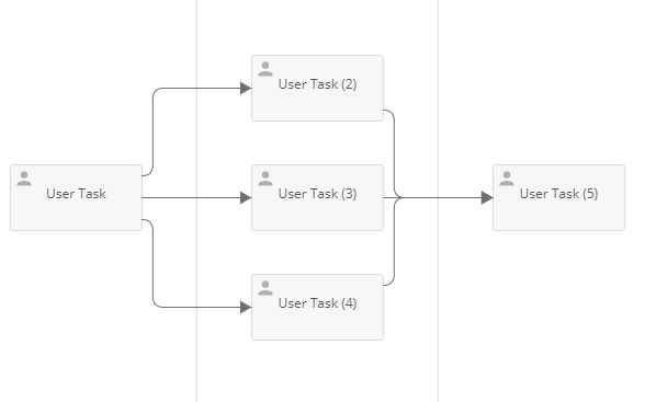 I have a Business Process that starts with an User Task, then it splits into three tasks that are supposed to run parallel, and then they merge into one again. The result is three forms for the last User Task. What strategy will you recommend to have the last three forms combine into one, for User Task(5) below?